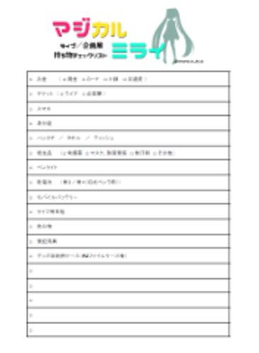 マジカルミライの準備用に作った持ち物チェックリストを配布します。 下記リンクよりダウンロードの上、常識の範囲内でご自由にお使いください。 マジミラ用持ち物チェックリスト カスタム用チェックリスト 旧式版 マジミラ用持ち物チェックリスト マジミラ…
